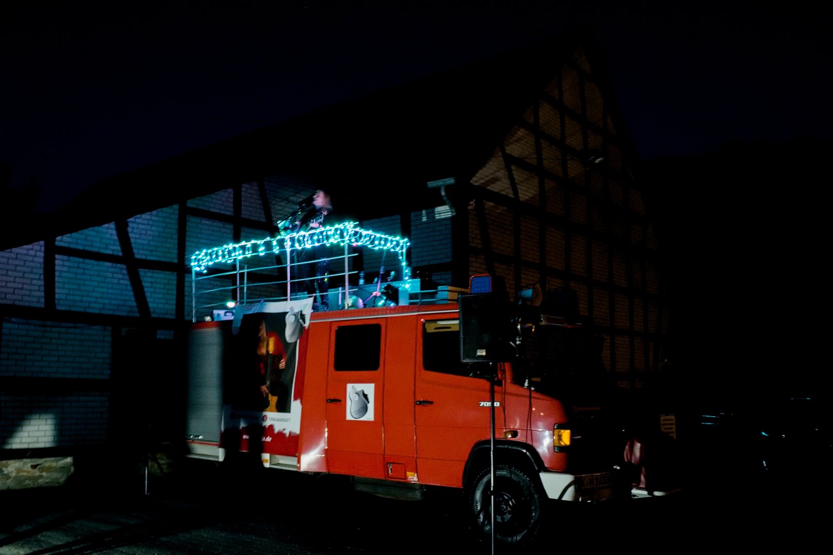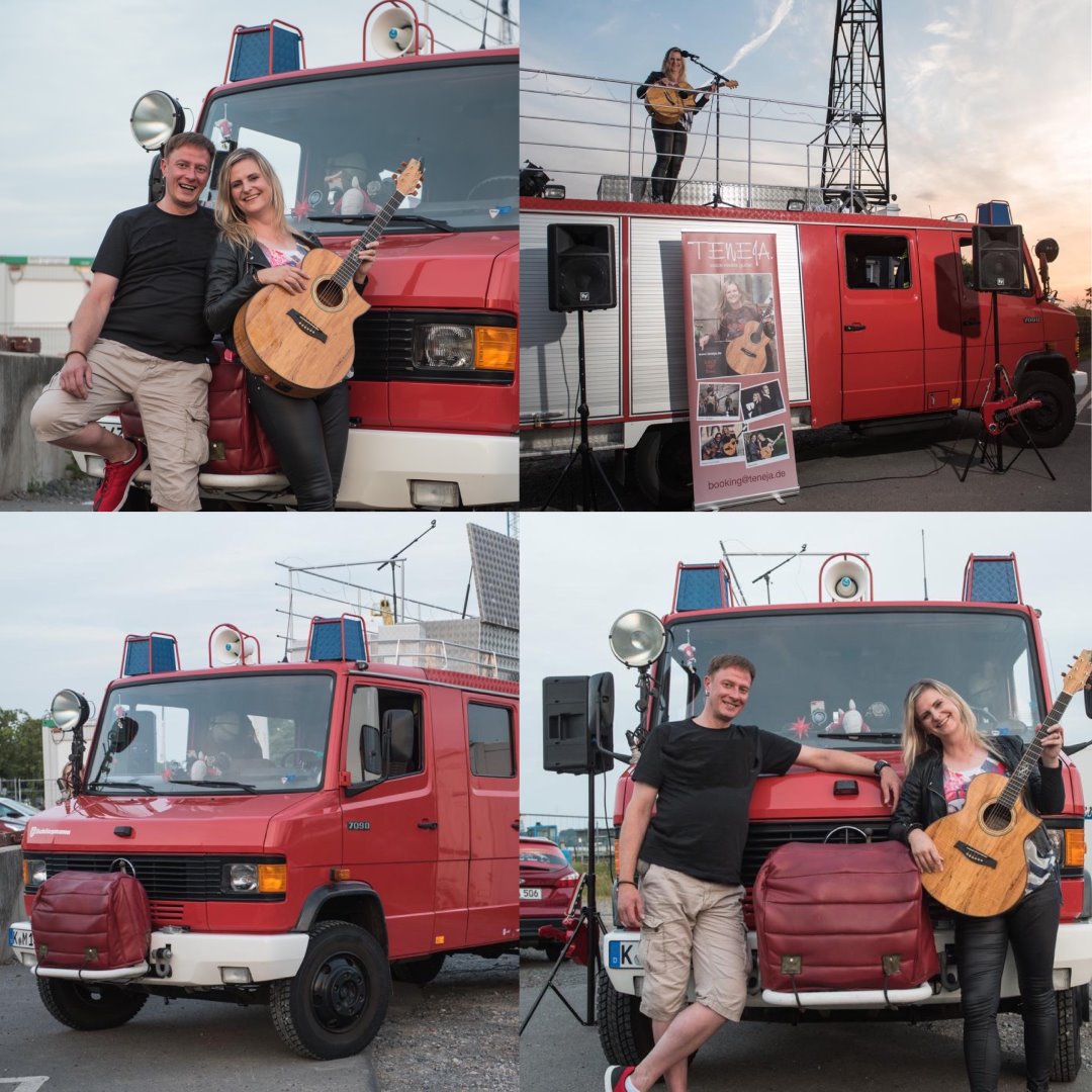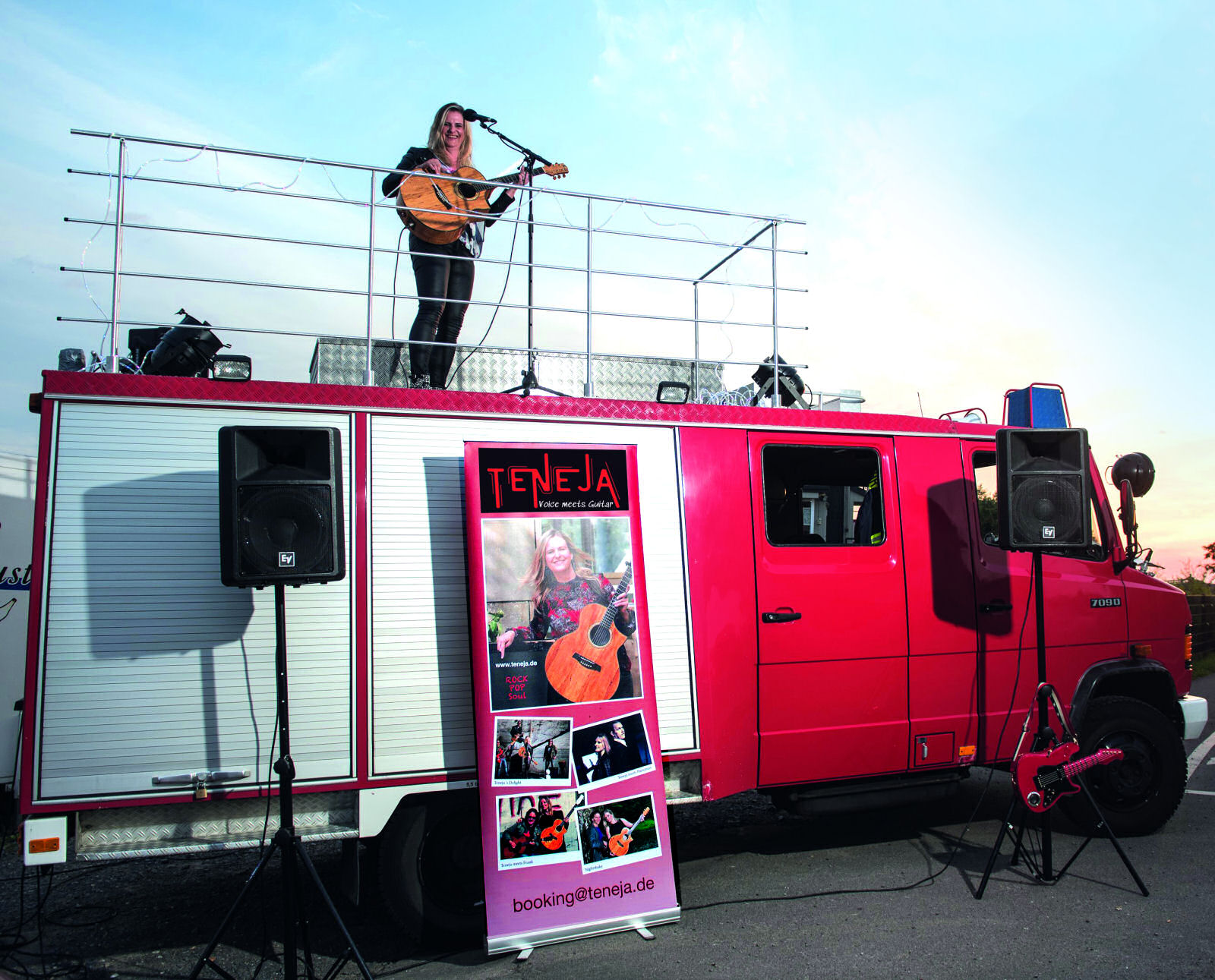 als HIGHLIGHT mit „Songs über den Wolken“ – Teneja auf dem Dach des „LF8“ Feuerwehr Oldtimerwagens