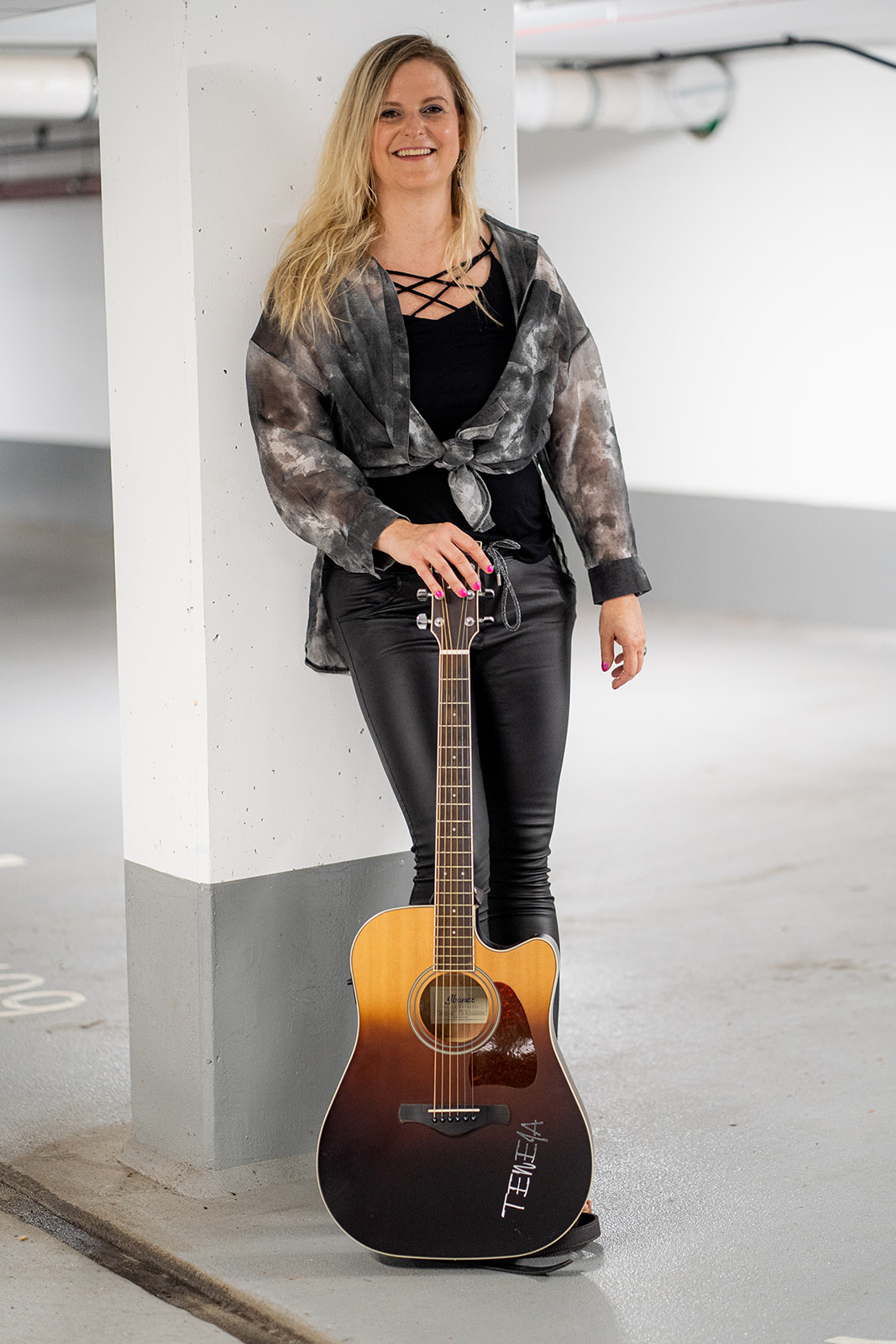 Sie spielt es nicht nur, sie taucht darin ein. So ist ihr Gitarrenspiel mehr als eine Untermalung ihrer professionell geschulten Stimme und bringt die Cover in einem neuen Gewand und eigener Interpretation und Feeling für dich und dein(e)Gäste/Publikum.