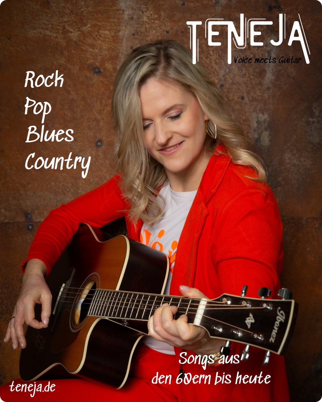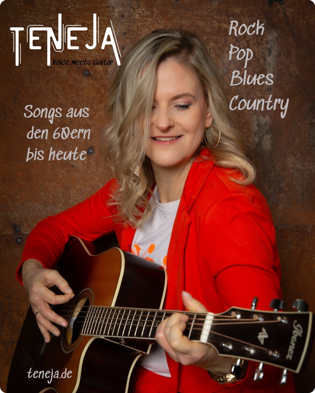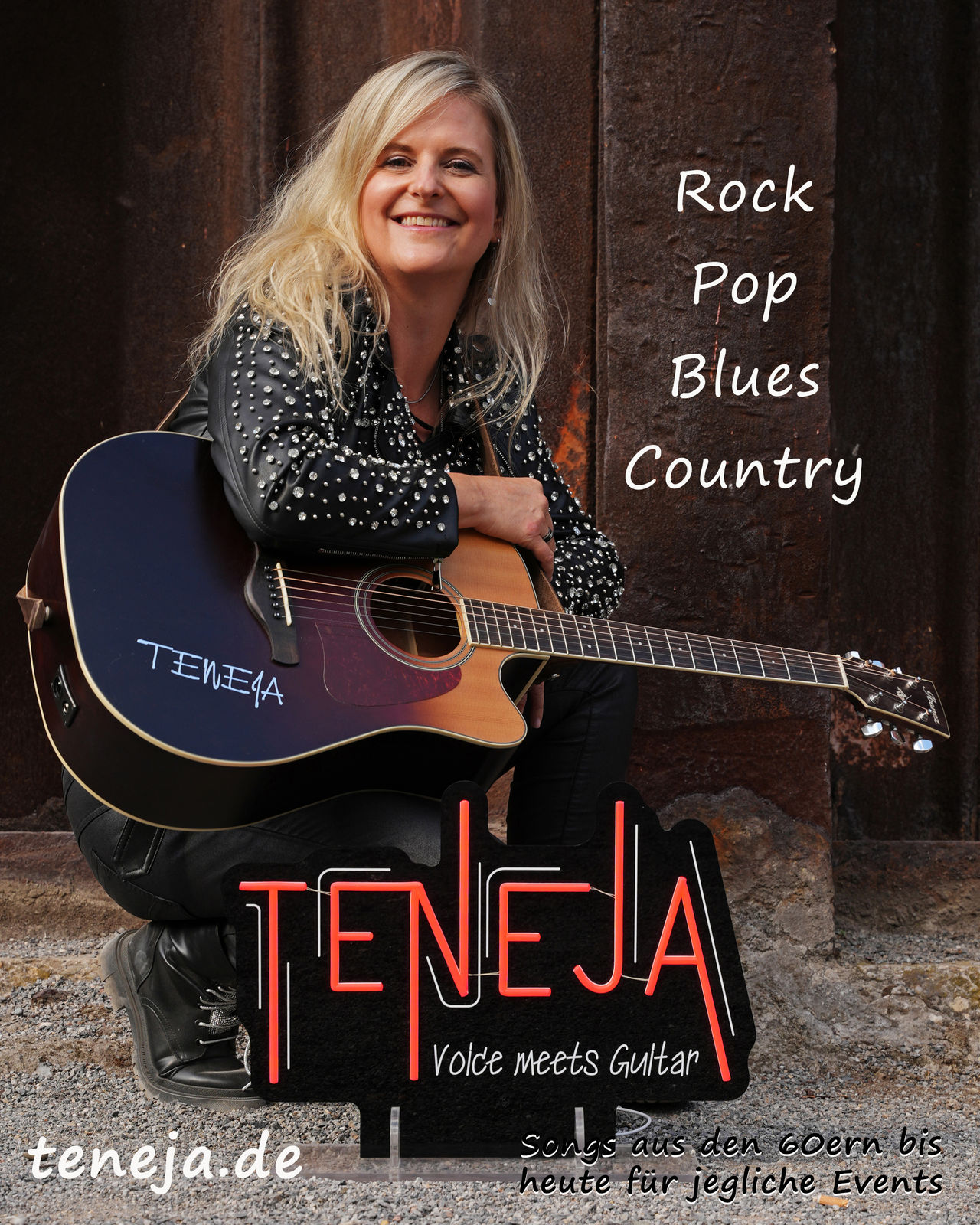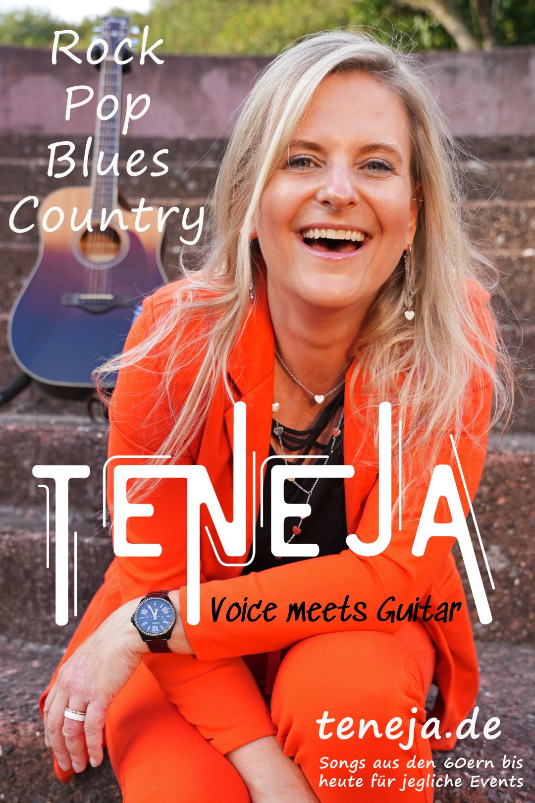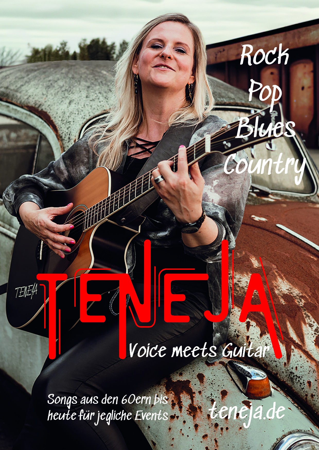 Teneja – seit 2006 lebt die gebürtige Slowenin von Ihrer Leidenschaft als "Voice meets Guitar" (Gitarre trifft Gesang) und tourt immer mehr durch ganz Deutschland.Das Besondere - Ihr Repertoire an Songs (von Billy Idol, Led Zeppelin, Pink Floyd, Adele bis hin zu Simon&Garfunkel etc.) perfektioniert und beherrscht Sie ihre beiden Instrumente (Westerngitarre und Stimme) und begeistert (oder verzaubert) ihr Publikum mit - ob Blues, Pop, Rock, Soul Folk oder Reggae! Wollte man ihre Stimme beschreiben, so müsste man viele Parallelen bemühen: